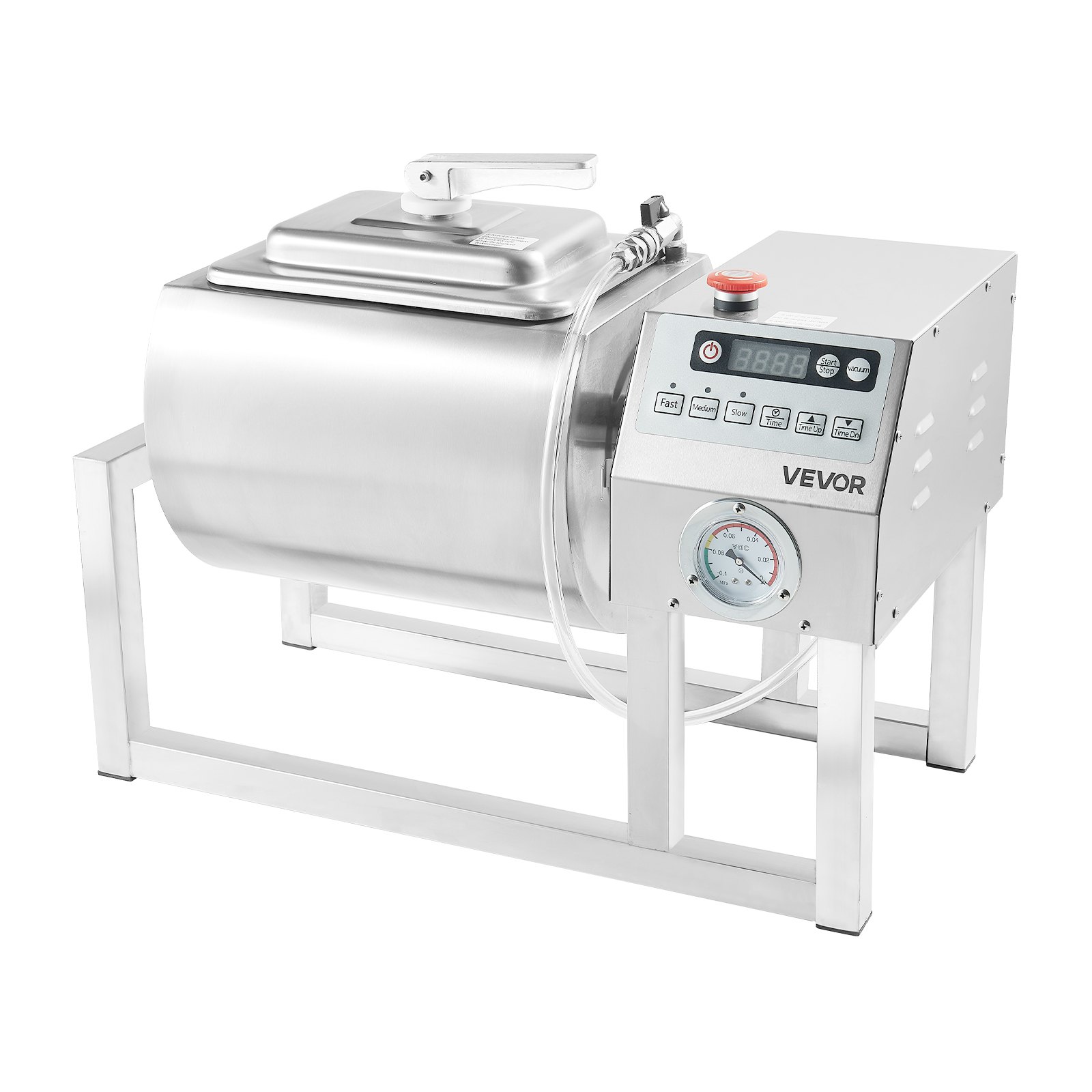 Large Capacity: Equipped with a 20L large-capacity vacuum drum, the vacuum tumbler marinator can process various meat such as chicken, steak, pork, etc., meeting both commercial and home-use needs